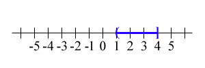 `1 < x <= 4` |