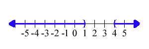 `x < 1 \ \ \ \ \ ` or ` \ \ \ \ \ x > 4` |