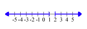 `x < 1 \ \ \ \ \ ` or ` \ \ \ \ \ x >= 2` |