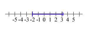 `-2 <= x < 3` |