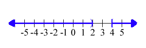 | 46. | `x < 2 \ \ \ \ \ ` or ` \ \ \ \ \ x >= 4` | `(-oo,2)uu[4,oo)` | ![]() |