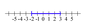 | ` [a,b]` | represents all real numbers bewtween `a` and `b`, including `a` and including `b`. This is an closed interval. Using inequalities, this is written as `a <= x <= b`. |